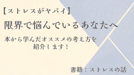 【ストレスがヤバイ】限界で悩んでいるあなたへ。本から学んだオススメの考え方を紹介します!|「ストレスの話」