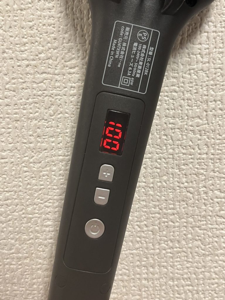 コードを差し込み、電源ボタンを長押しすることで起動できます。起動すると100という数字が表示されますが、それは温度を表す数字となっています。