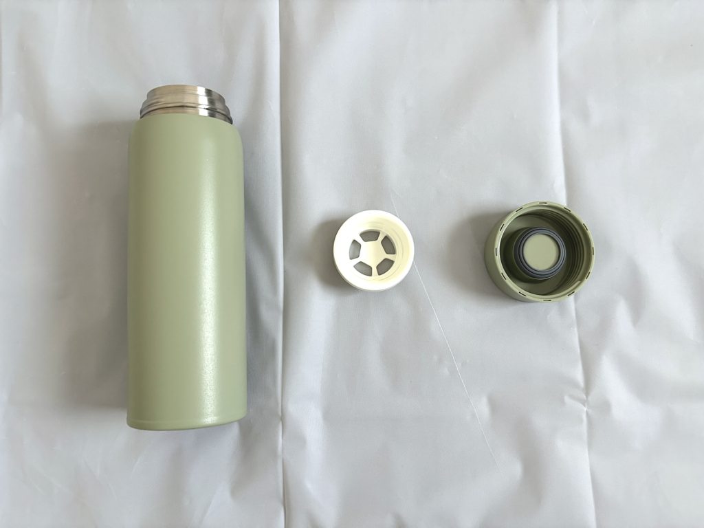 1つ目は、カバー(仕切り)についてです。ボトル本体と蓋との間に、カバーがついています。このカバーは、口当たりが良いのが特徴です。